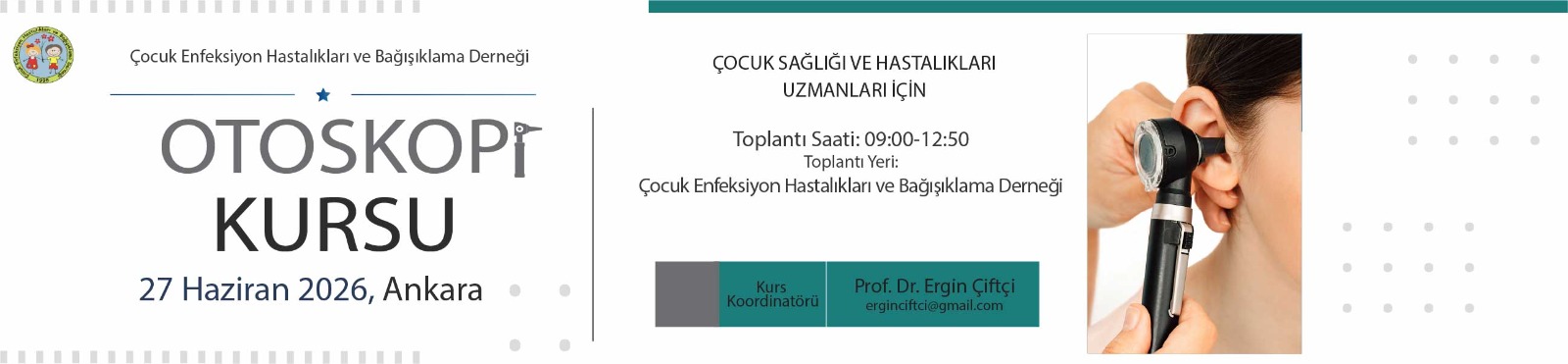 24 Nis 2026 Otoskopi Kursu - 27 Haziran 2026 OTOSKOPİ KURSU, 27 Haziran 2026 tarihinde Çocuk Enfeksiyon Hastalıkları ve Bağışıklama Derneği, Ankara'da gerçekleştirilecektir.Bilimsel program için tıklayınız. Bu gönderiyi paylaş Bir yorum yaz Ad-Soyad * E-posta adresiniz * Yorumunuz *